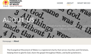 One organisation proclaims: “The Evangelical Movement of Wales serves churches and Christians, helping them to glorify God, evangelise Wales, and build up believers”.