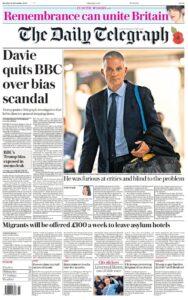 The Guardian published: ‘In an announcement that caused shock within the corporation, Davie said his departure was “entirely my decision” and it comes as the BBC prepares to apologise for the way it edited a Trump speech’.