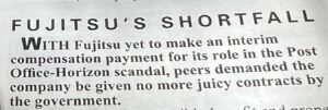 The latest payment, on March 31, comes as the company tells staff that nearly 10 per cent of its UK workers will be made redundant, and while the Westminster Government waits to hear what will be Fujitsu’s payment towards the cost of the PO outrage.