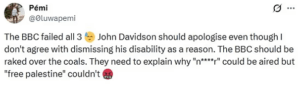 However the broadcaster sparked a major backlash from viewers and commentators in parts of the media, because it was viewed as biased for editing out “Free Palestine” during one speech, but keeping the racial slur in another.